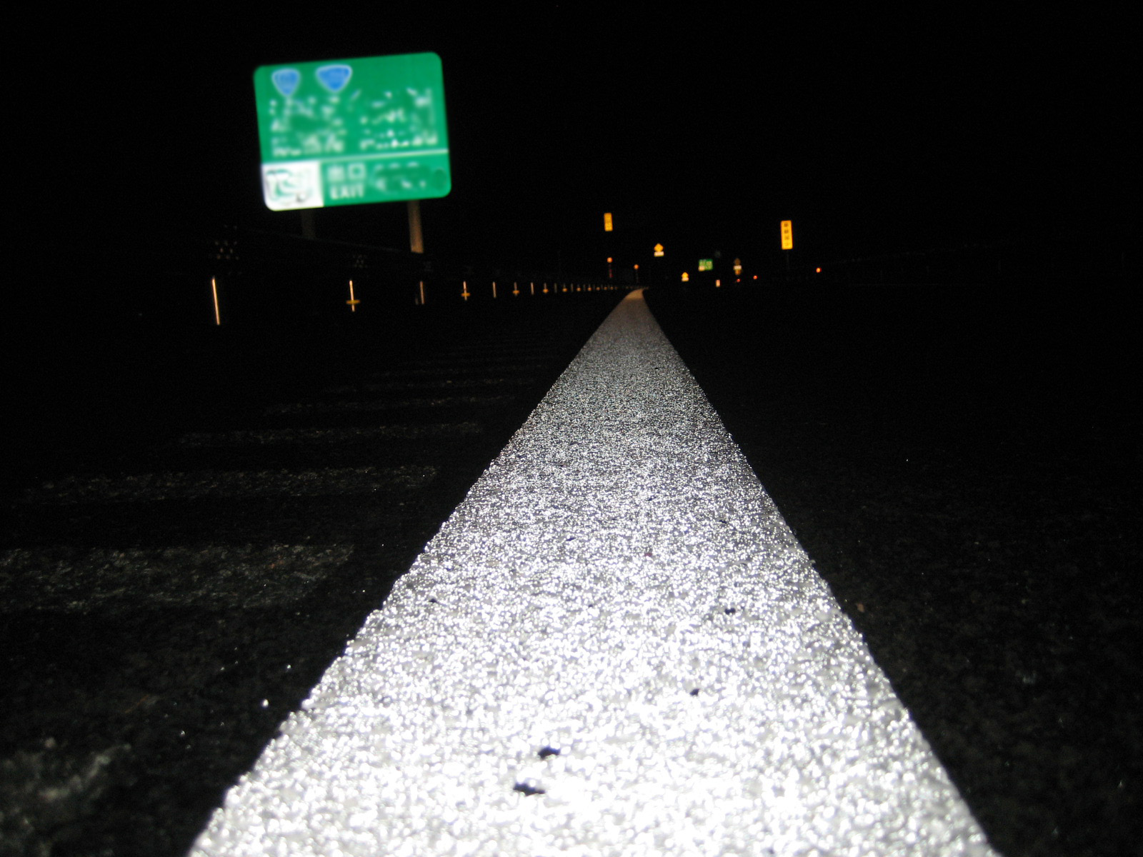 画期的な特殊ビーズである「plus9spots®BEADS」により、晴天時は非常に高い反射性能を発揮し、雨天時でも高い視認性を確保します。夜間晴天時及び雨天、湿潤時にもこれまでにない反射性能を発揮する超高輝度全天候型路面標示です。