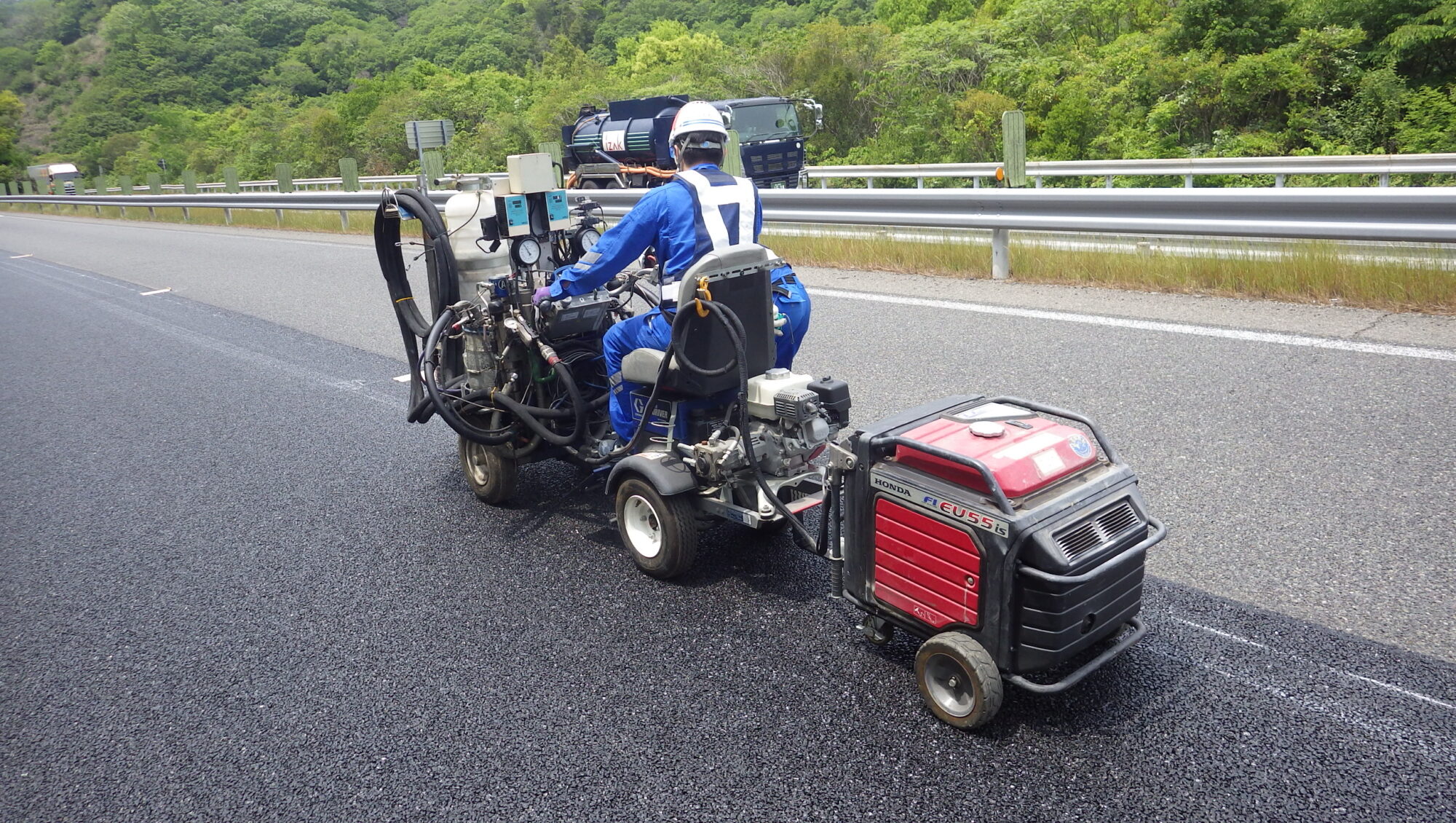 摩耗に強く、非常に高い耐候性を持つ2液混合タイプの路面標示用塗料です。有機溶剤を含まないため環境対策にも貢献します。