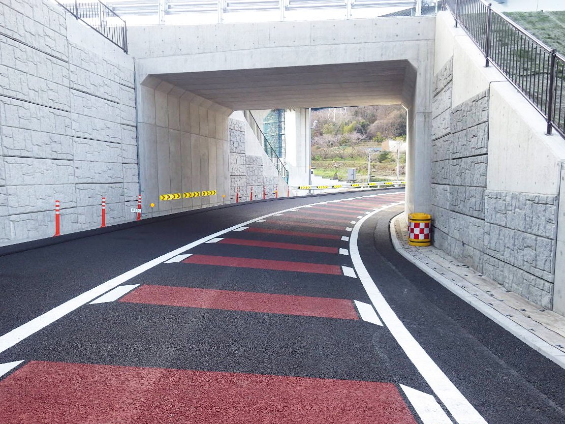 骨材固着力、耐摩耗性、耐水性、耐薬品性に優れ、重車両、高速走行など過酷な条件下でも高度な耐久性と耐スリップ性を保持します。