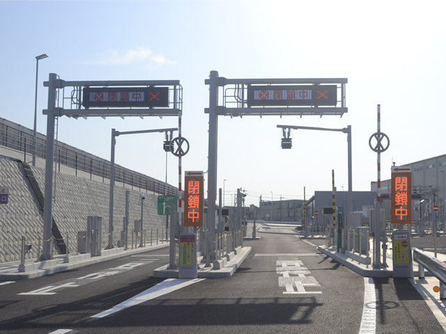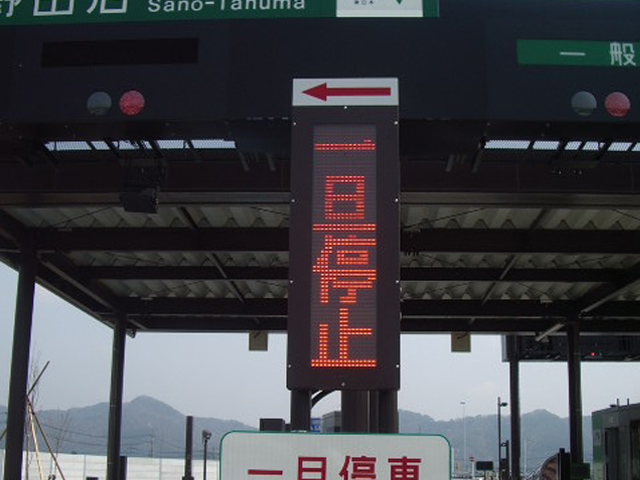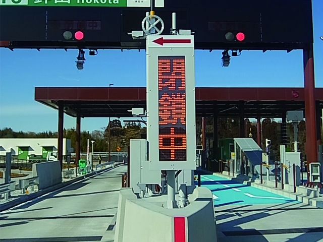車線サーバーからの接点信号により、車線表示板と連動して表示内容を変更できます。ETCレーンの情報をドライバー目線で伝えることによって係員がレーンを横断する際の安全確保だけでなく、登録内容の追加・変更を行うことで事前告知情報や広報情報の表示など柔軟な運用が期待できます。