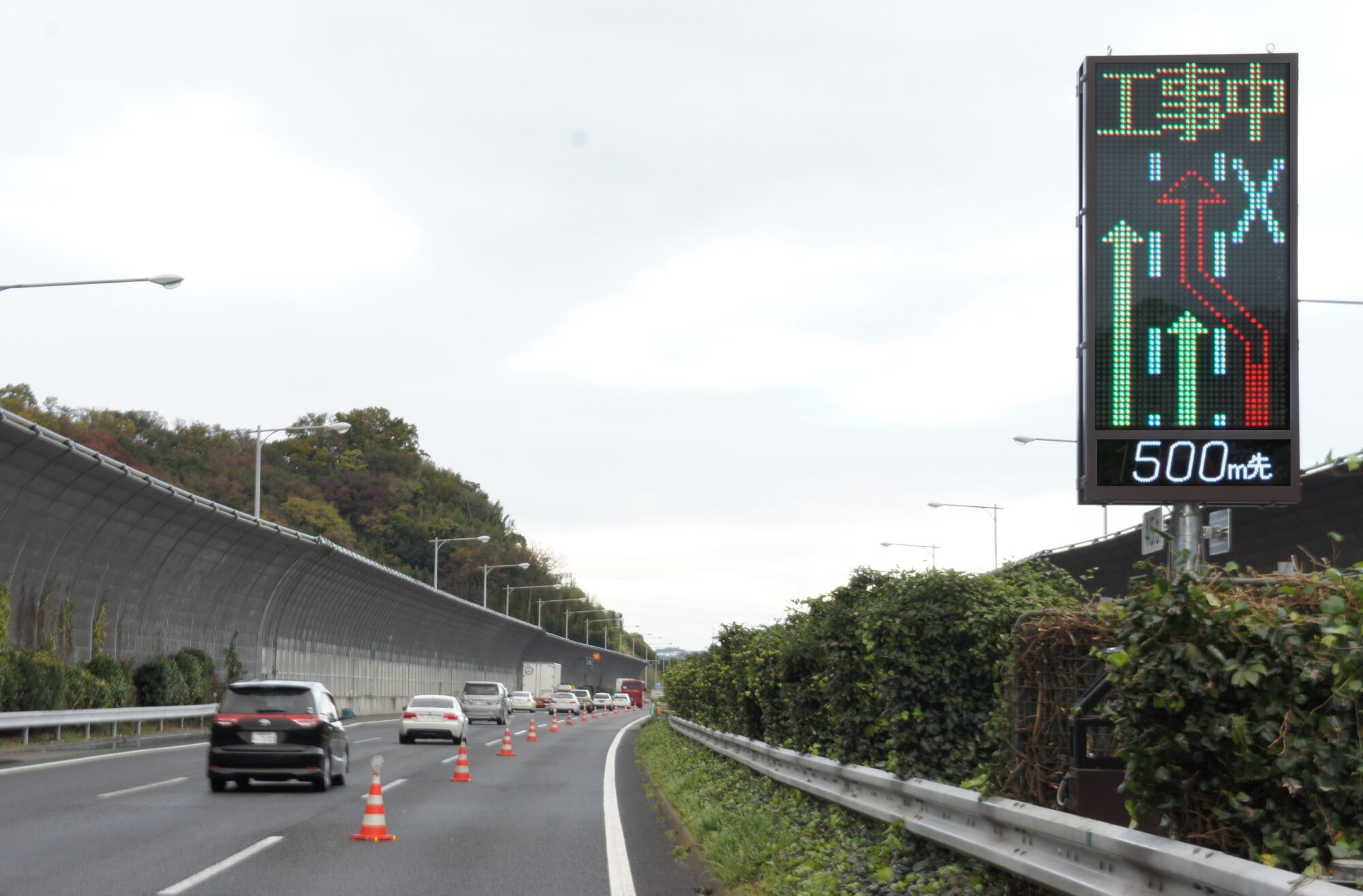 交通規制設置撤去作業時の危険性を減少させるLED表示機