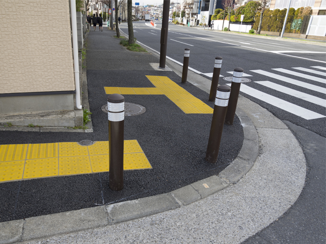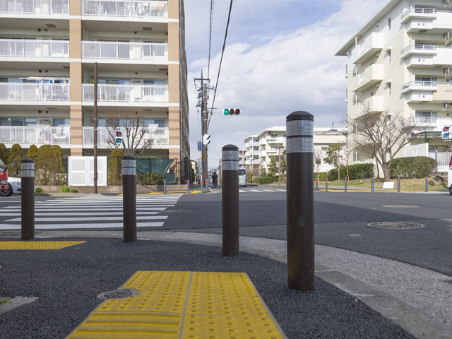 歩道への車両進入を防ぎ、歩行者の安全を守ります。