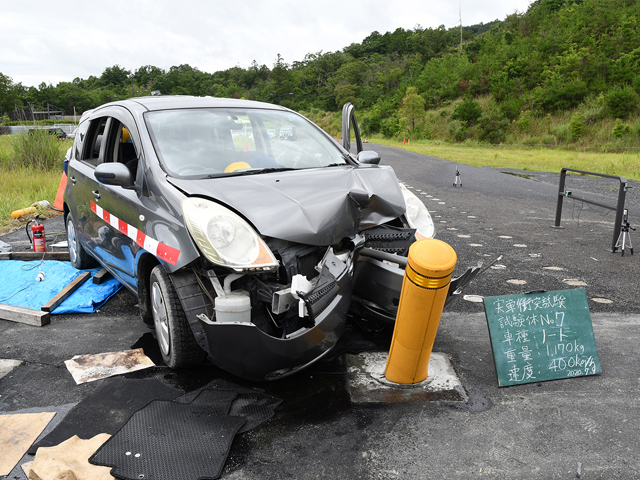 試験方法:地面上に設置された試験体に対し車両を衝突させる。