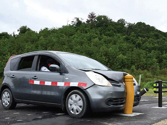 ■ 衝突時の断面変形を抑えて強度を保持する新高強度コアユニットを内蔵、実車衝突試験により性能確認された40km/h衝突に対応した車止めです。